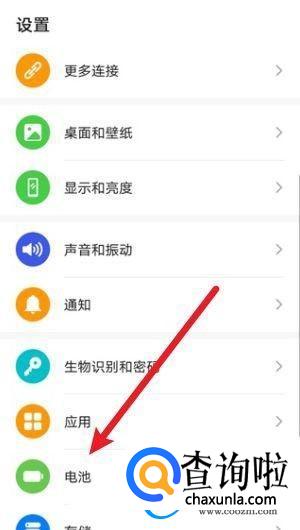 首先打开设置,并找到【电池】选项。