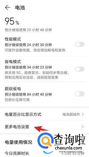 打开之后点击【更多电池设置】。