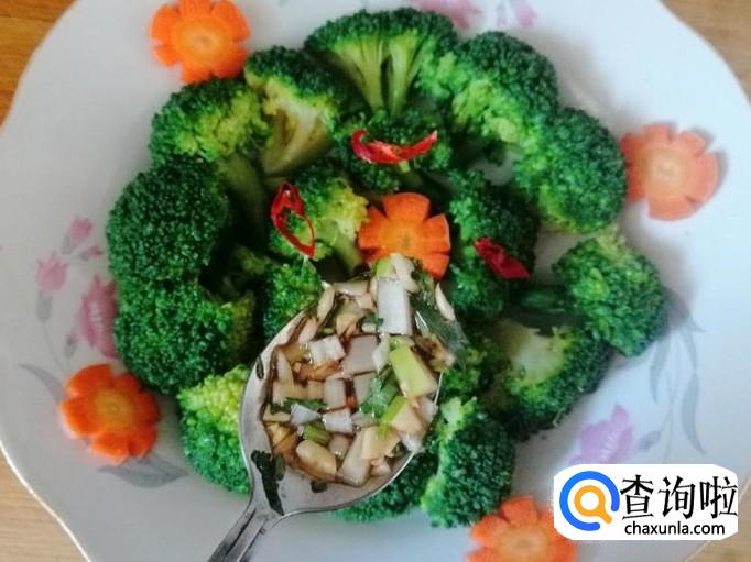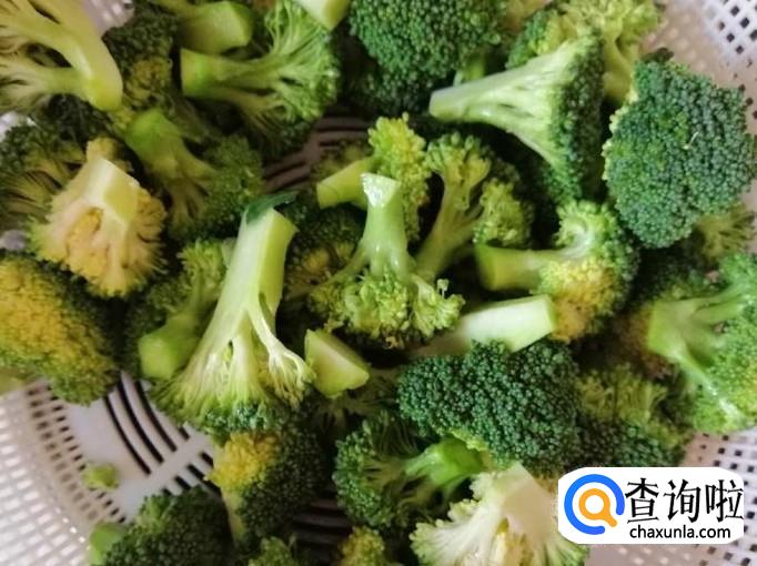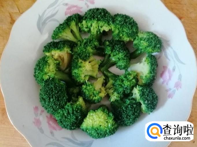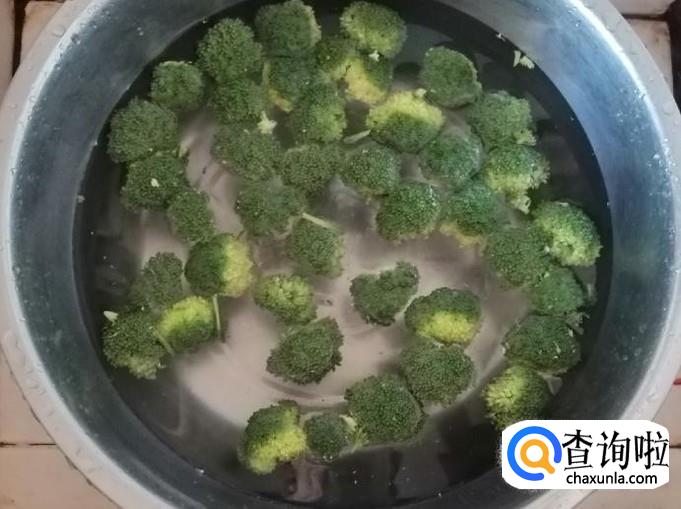 取适量新鲜的西兰花,用清水把西兰花洗净,然后把西兰花切成小朵,用盐水泡一会,最后冲洗待用。