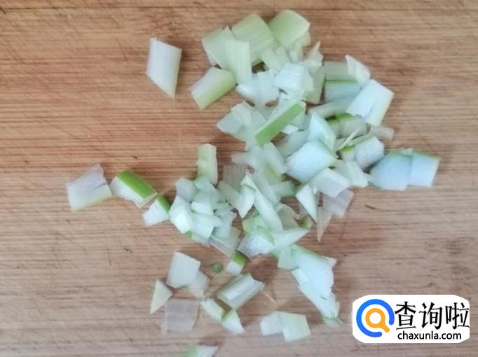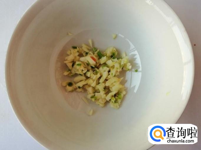 剥几瓣大蒜,用清水把蒜洗净,然后用刀切掉两头,把蒜拍扁切末待用,大葱洗净切好待用。