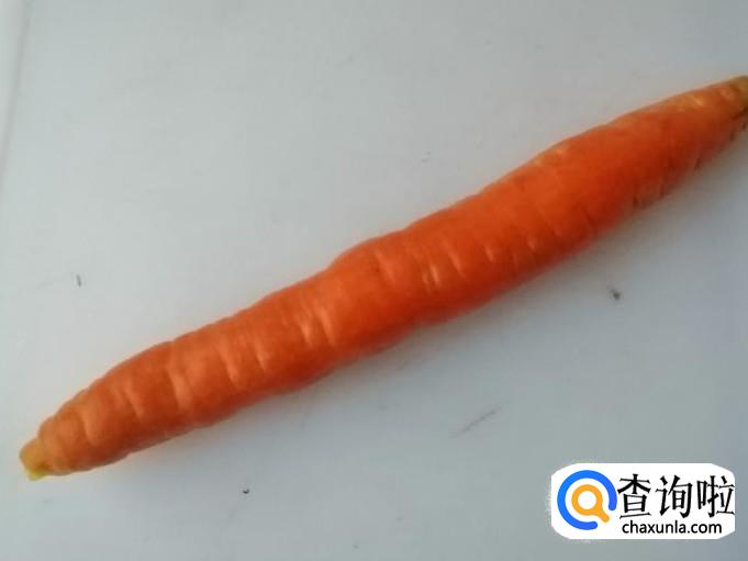 取一小根胡萝卜,用清水把胡萝卜洗净,用刀切掉胡萝卜两头,然后把胡萝卜切成自己喜欢的形状就可以了,我切好的胡萝卜忘拍了,直接摆盘里了。