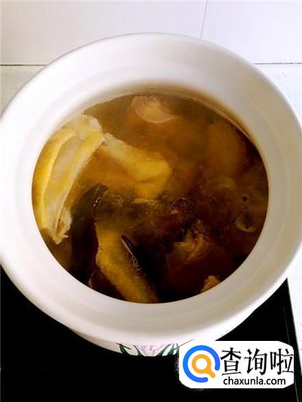 大骨头放进锅里,加上开水,将灵芝放进去一起煲汤,大概两个小时就可以了。