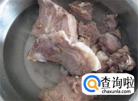 大骨头剁成块,放进热水里焯水捞出来。