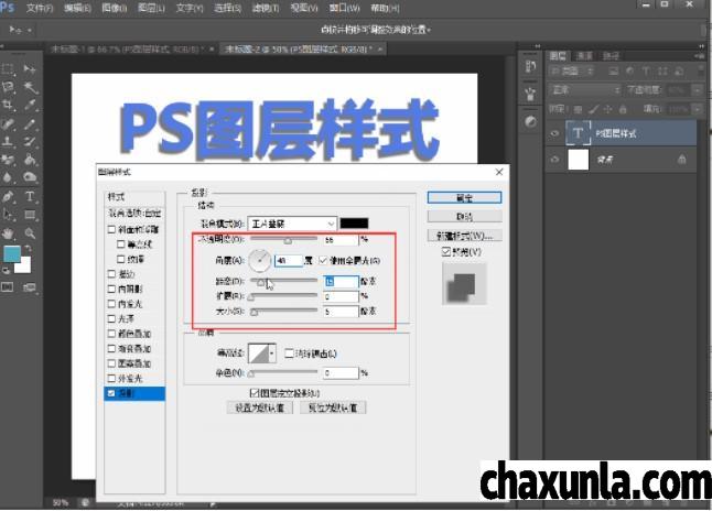 打开之后并打开【投影】的图层,并打开图层的形式。