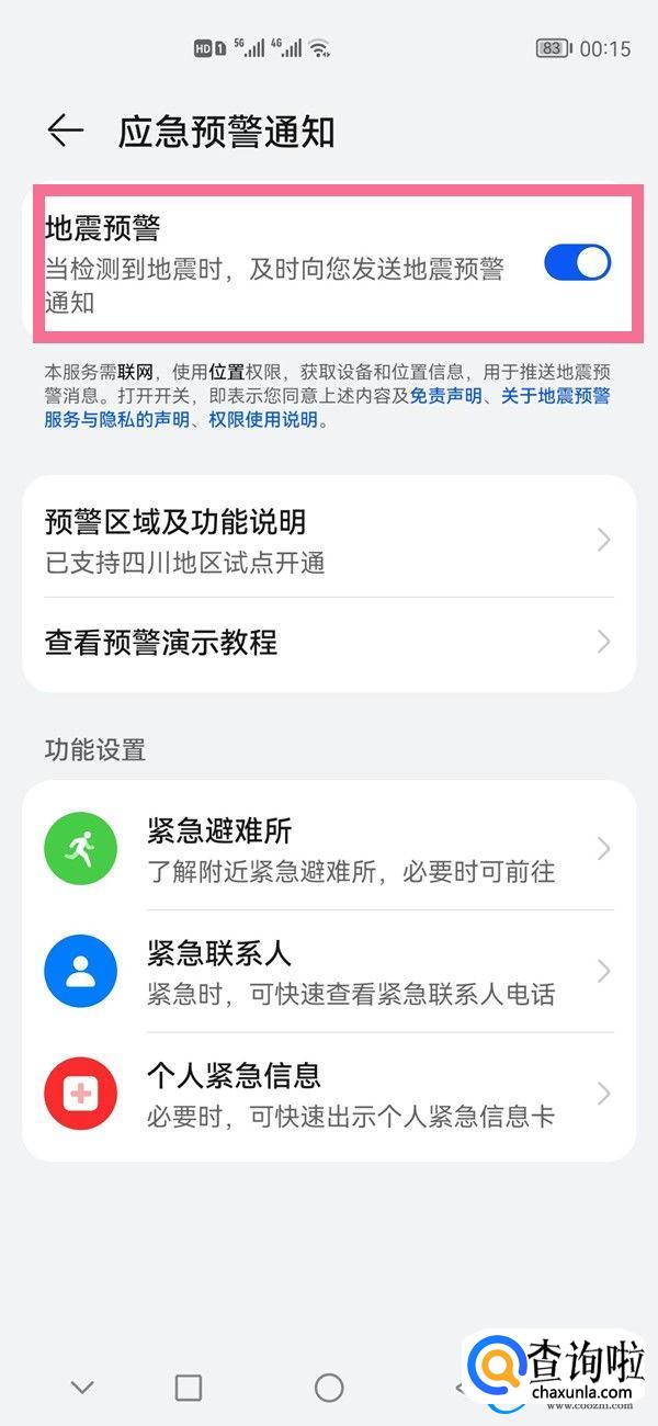 华为p40pro地震预警怎么设置