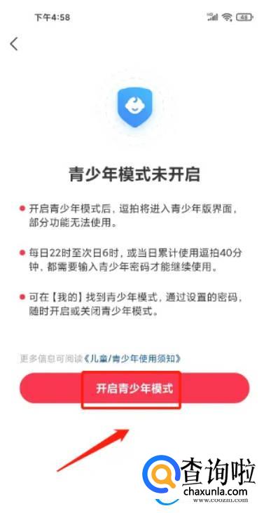 选择(开启青少年模式)。