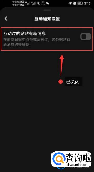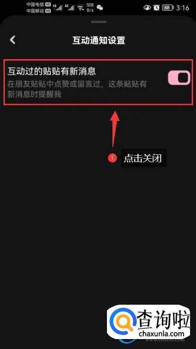 点击关闭互动消息推送通知功能开关【截图中圈红的部分】