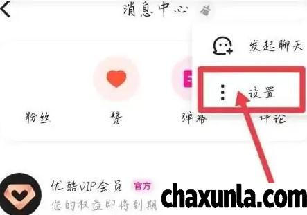 打开优酷视频APP应用之后,点击消息中心点击右上角,三个小点。