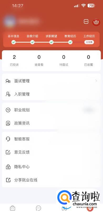 进入就业在线后点击【我的】页面栏;
