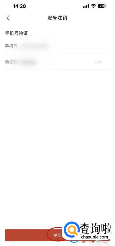 进入手机号验证的页面输入【短信验证码】后点击【提交】选项。