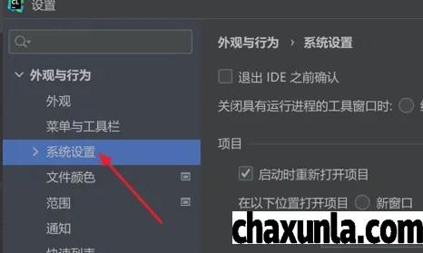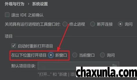 最后在右侧找到项目栏,勾选在以下位置打开项目右侧的新窗口即可。