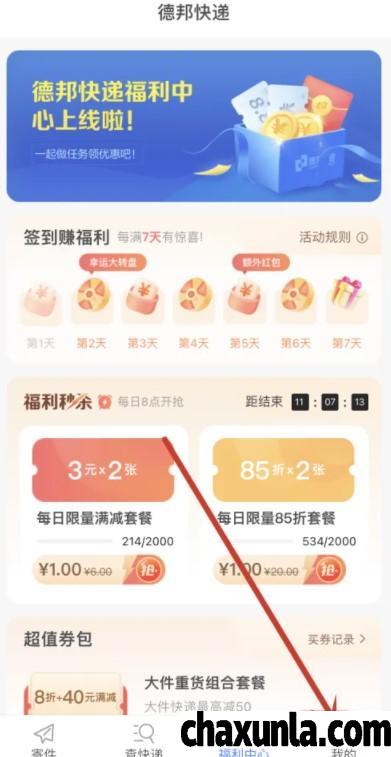 首先我们打开德邦软件并点击右上方的【我的】