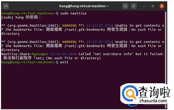 12.在终端机输入「exit」,按键盘的「Enter」键,关闭终端机,结束root的编辑工作。