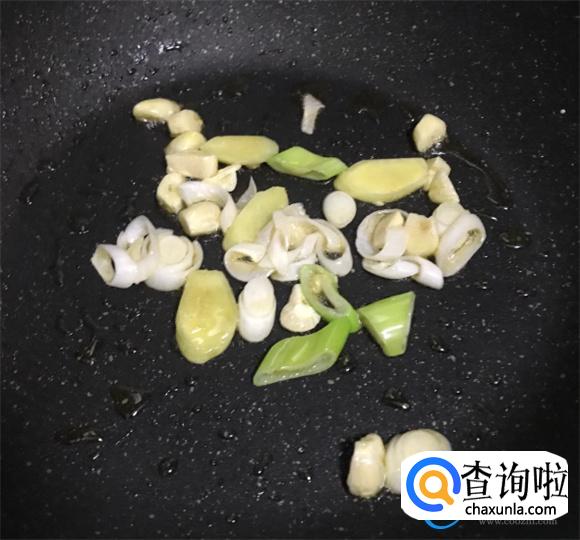 锅里面放入老姜片爆香,再放入大蒜瓣以及红辣椒将炒香。家里面有豆瓣酱可以放入豆瓣酱,适当的爆香。不过此时要控制好温度,避免出现烧焦的情况。