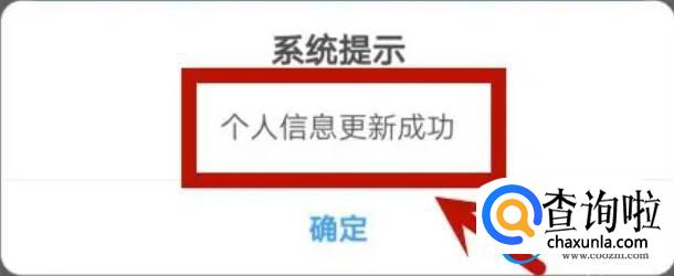 更新身份证成功人脸识别认证通过之后,页面弹出个人信息更新成功,点确定即可。