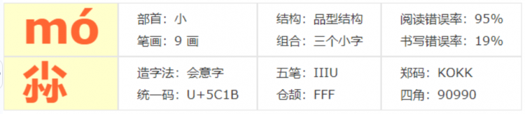 三个“小”念:尛(mó)。