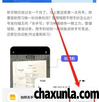 点击拍照去除手写笔记。