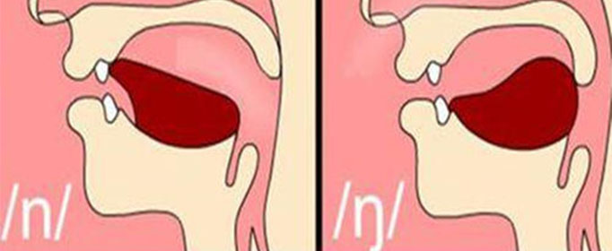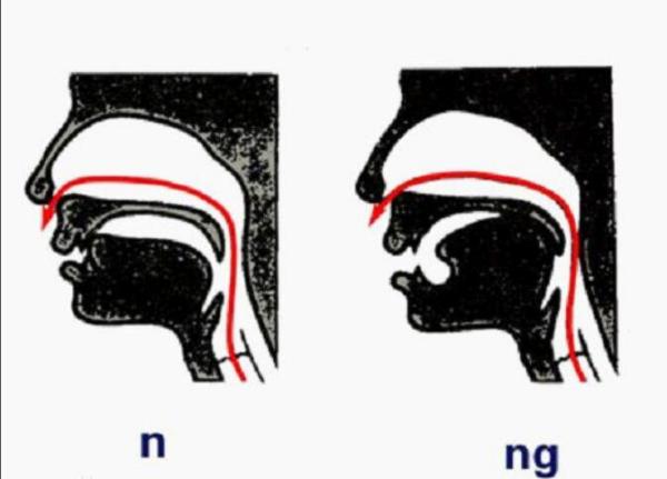 后鼻音如ang、eng、ing的发音,前面的元音发音靠后,a发为后a。e本来就是一个发音靠后的元音,元音 a、e在后面发的同时先往后缩,再正抛物线的往上升,使舌根与软颚形成阻碍,使气流从后口腔进入鼻腔,发出后鼻音。i是舌尖前元音,在前面发音,因此发ing时,在发i的同时舌跟往后拉,才能使舌跟与软颚形成阻碍,产生后鼻腔共鸣。