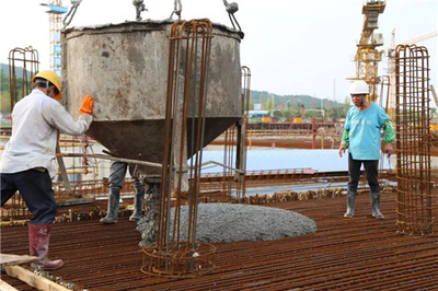 混凝土的拌合物可以选用料斗或运输车辆送到施工现场。然后用人工或者机械进行灌筑。混凝土泵输送灌筑的效率更高,每小时可达数百立方米。