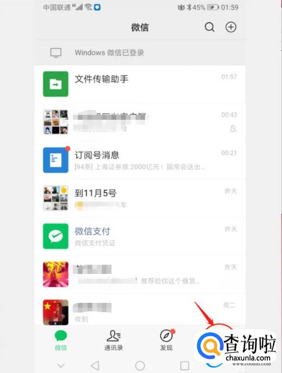 进入微信首页,点击“我的”