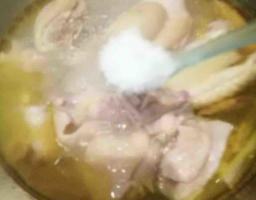 差不多炖90分钟左右,将葱段捞出来,然后加入盐调味,之后再炖15分钟。