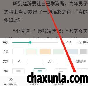 打开app并随便找一本任意小说,之后点击屏幕中心,找到右下角的设置并打开。