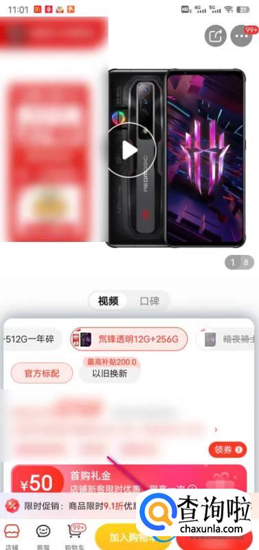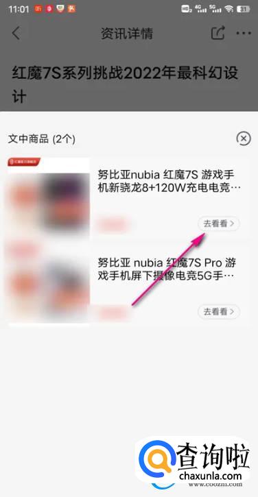 软件跳出商品弹框,找到对应的手机,点击右侧去看看按钮。