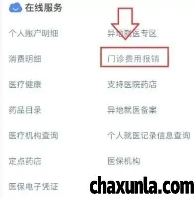 进入之后在此界面中找到【门诊费用报销】的选项,点击即可。