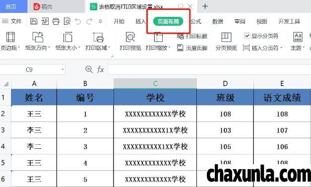 首先打开表格,点击页面布局。