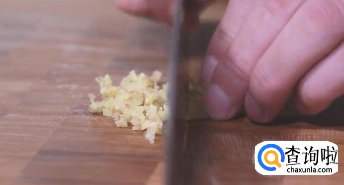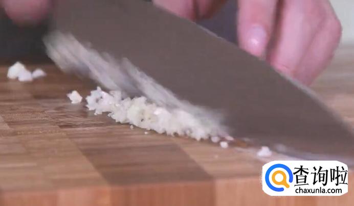 然后将蒜切碎。