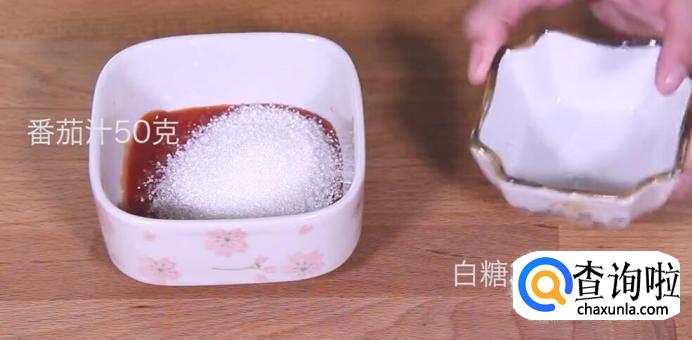 然后在番茄汁中倒入白糖,再加入适量的水进行搅拌。