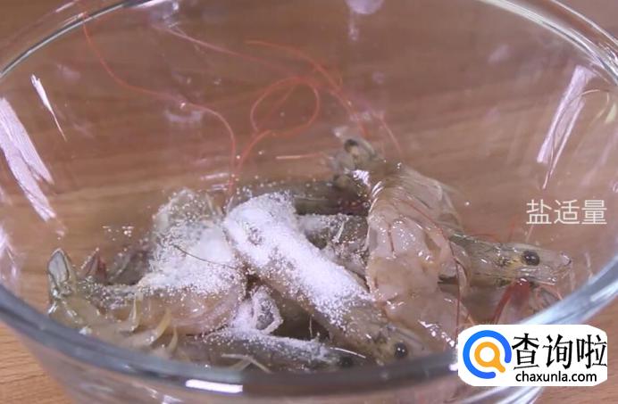首先将虾剖开,去掉虾线。