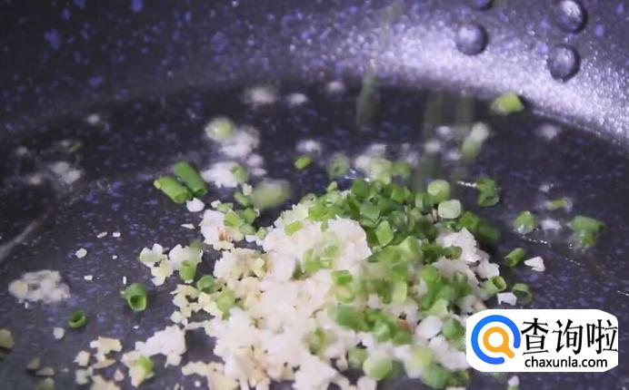 锅内倒入适量的油,将姜末、蒜末、葱花,倒入锅内翻炒出香味。