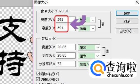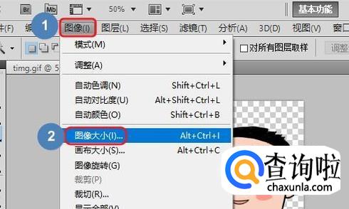接着在PS软件中点击“图像”-“图像大小”,然后在弹出的图像大小对话框,将原先的尺寸适当的减小一些;