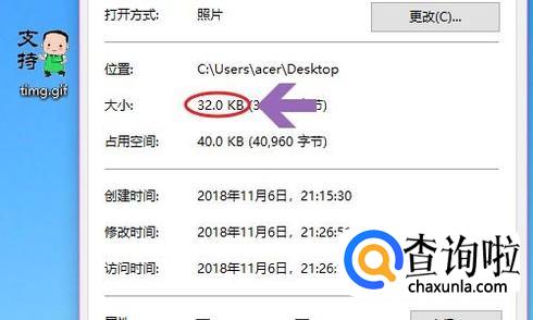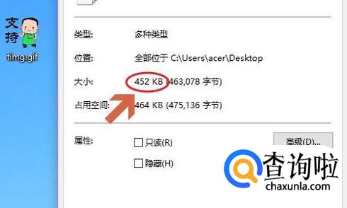 我们先来看看更改之前的动图大小是多少,选择图片以后点击鼠标右键“属性”,可以看到目前图片的大小为452KB;