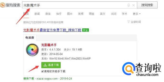 首先搜狗搜索光影魔术手,下载下来并安装到电脑上,如下图所示。