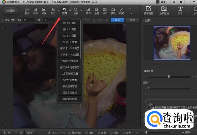 点击裁剪可以对图片进行简单的裁剪,也可以根据需要进行比例的裁剪!