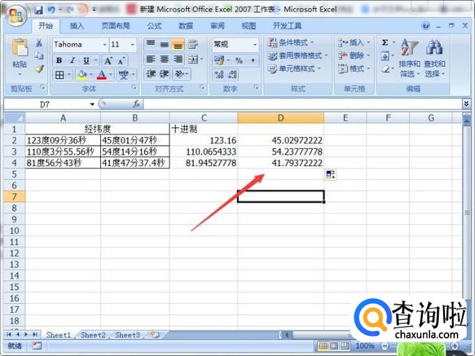 利用excel将经纬度度分秒转换成小数点