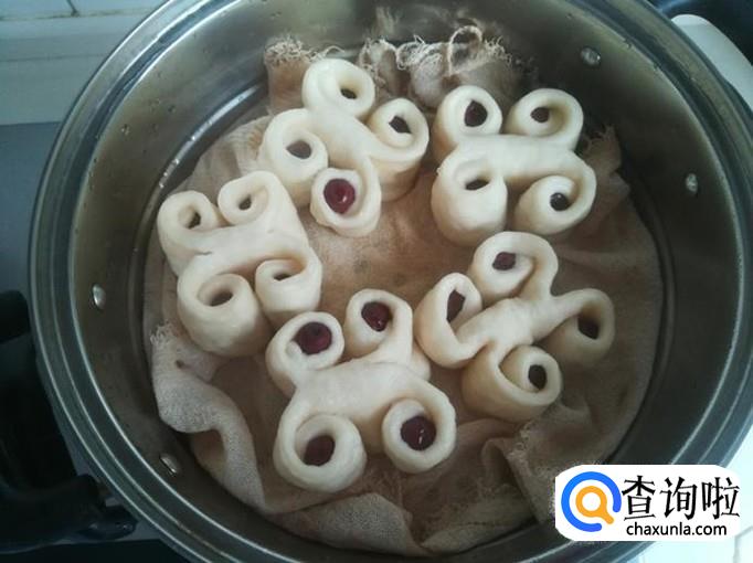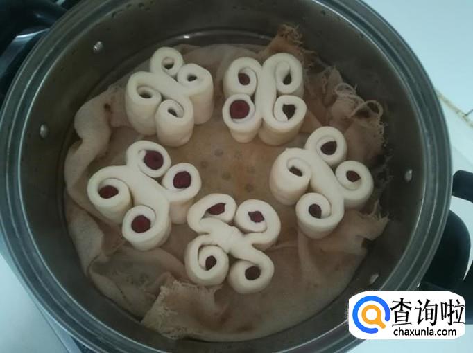 取一蒸锅,加入半锅水,放上笼屉,铺上笼布,水开后,把做好的枣卷馍生坯放在笼布上,隔水蒸上30分种。