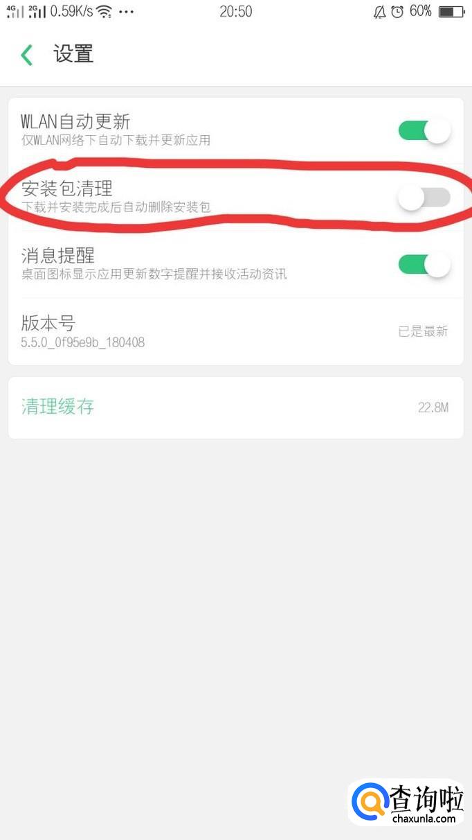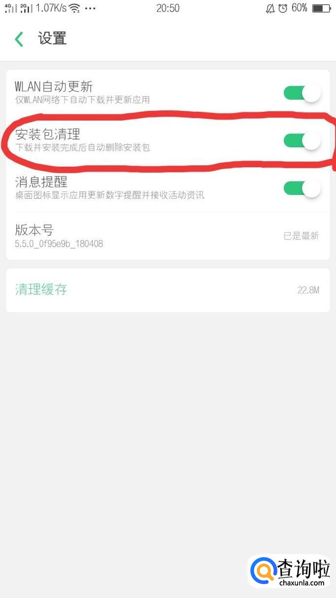 打开安装包清理这个选项之后,在后面手机下载安装成功之后就会自动删除安装包了。