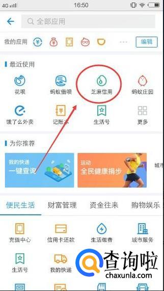 然后找到【芝麻信用】图标,并点击它,如下图所示: