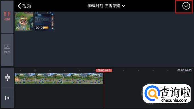 剪切完成,点击屏幕右上方的“√”,这样操作完成就保存成功了。你学会了吗?赶快动手试一试吧。