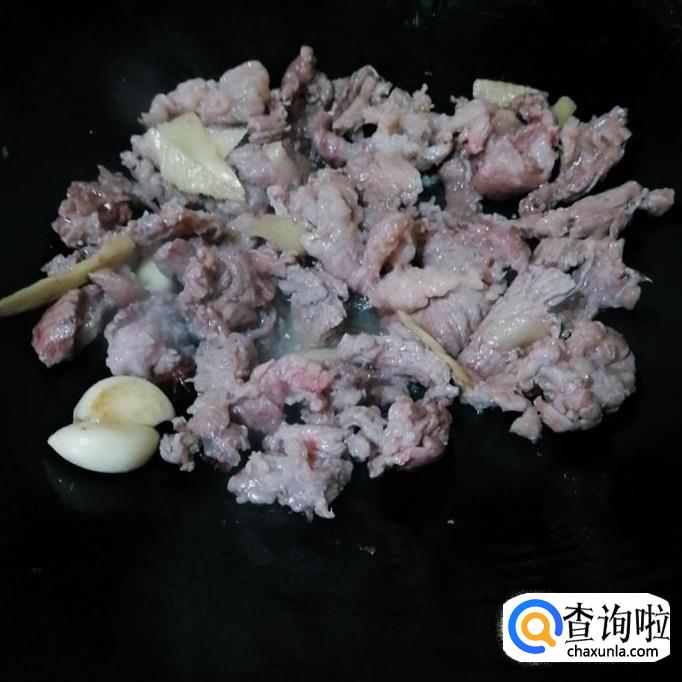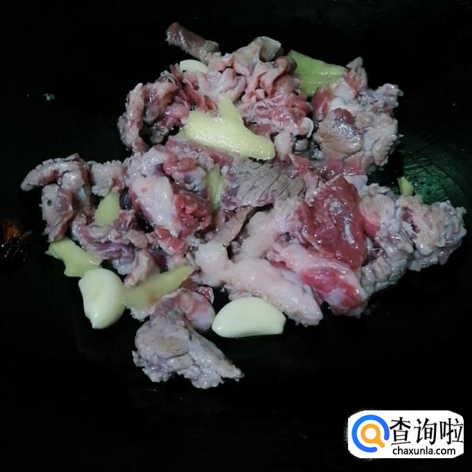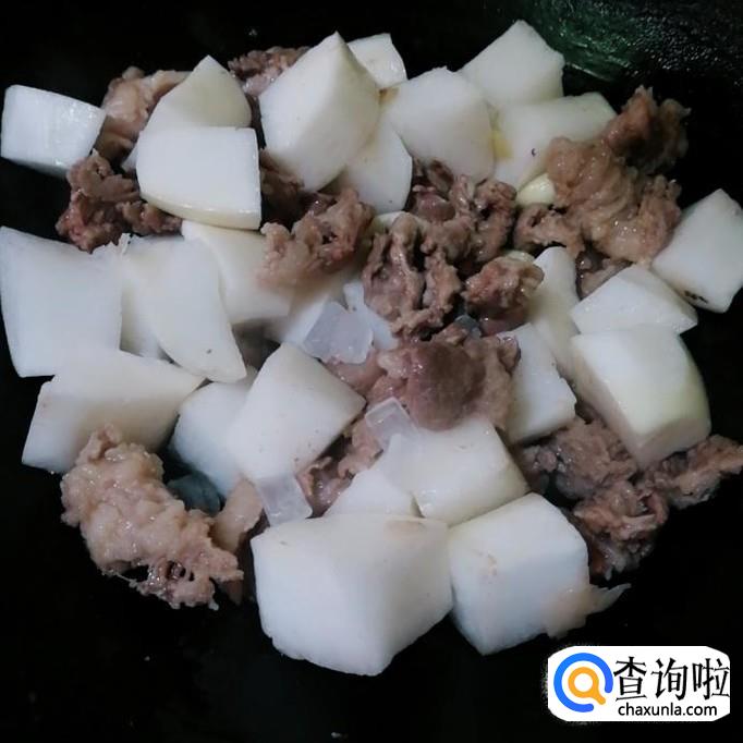 再把牛腩放下去转大火炒至牛腩变成白色。