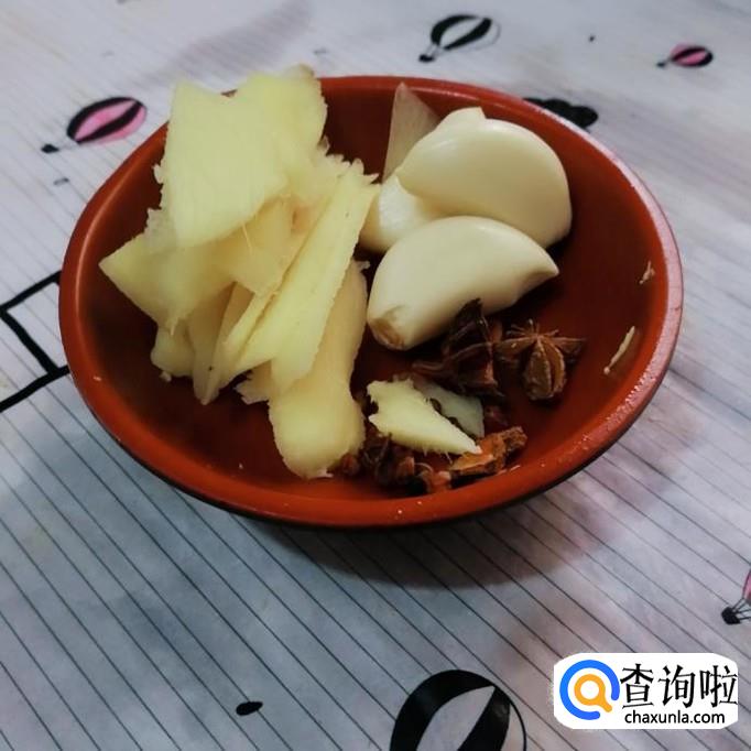 准备好所有配料,生姜稍多一点好除去牛肉的腥味。再准备十粒左右的冰糖,可以让味道好一些也可以不那么上火。