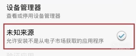 在安全面板里可以看到“允许安装未知来源”,打开后边的按钮。