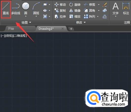 打开CAD之后我们在菜单区里找到直线命令,如图所示: