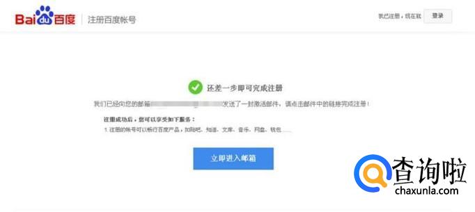 弹出“还差即可完成注册”的界面,然后进入到自己的邮箱,打开百度发的邮件,点击链接,弹出百度窗口。