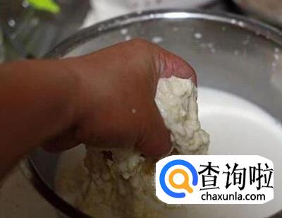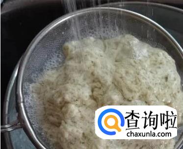 然后开始洗面浆的过程,在盆子里加入适量水,用力反复的搓洗挤压面团,直到水变白,然后把水过滤出来,继续搓洗面团反复这样步骤次,直到面团变黄色的面筋,水变清为止。