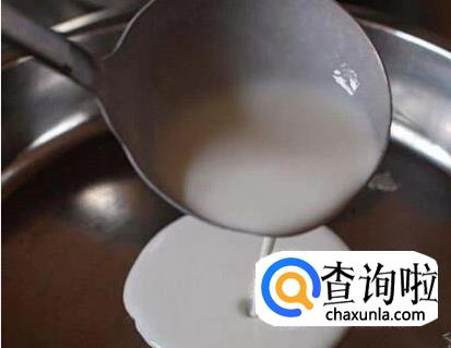 在锅里先加入适量水烧开,建议可以放个蒸架,这样能防止一会打面皮的时候盘子跑来跑去,另外为了效率建议大家用两个平底的盘子交替使用,然后在两个盘子里都涂上一层花生油,在舀入一勺搅匀的面浆,放锅里蒸上60秒左右即可。
