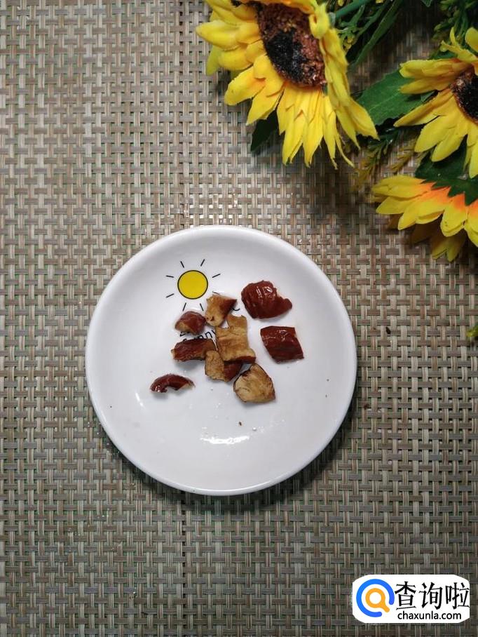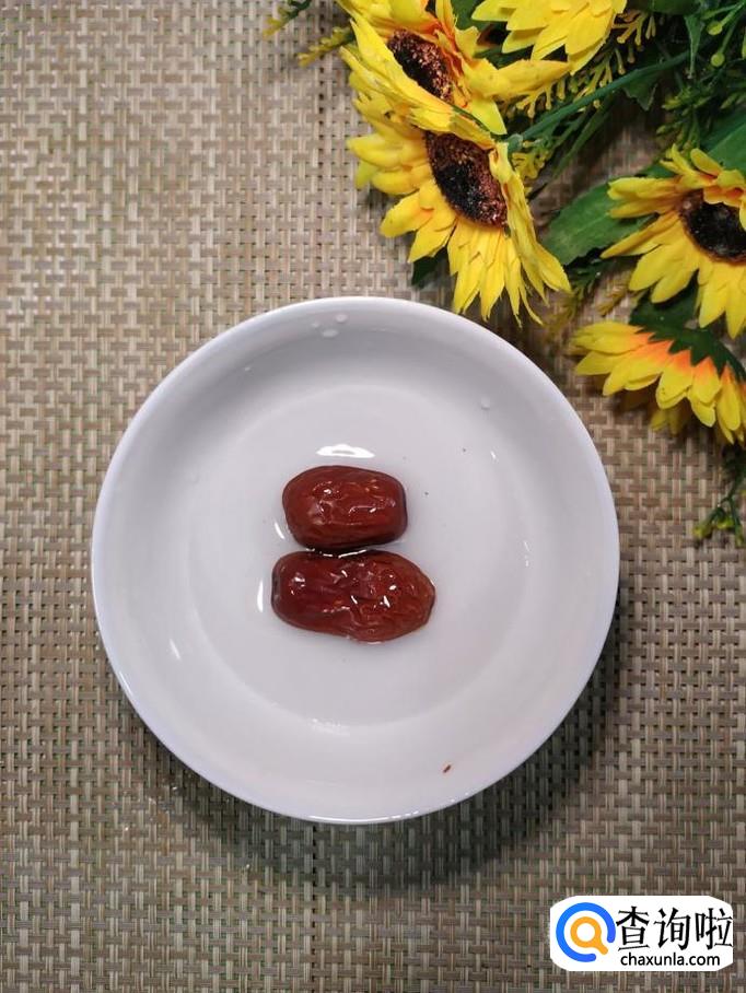 准备适量红枣,去除中间的核,切成小丁,放入雪梨中。